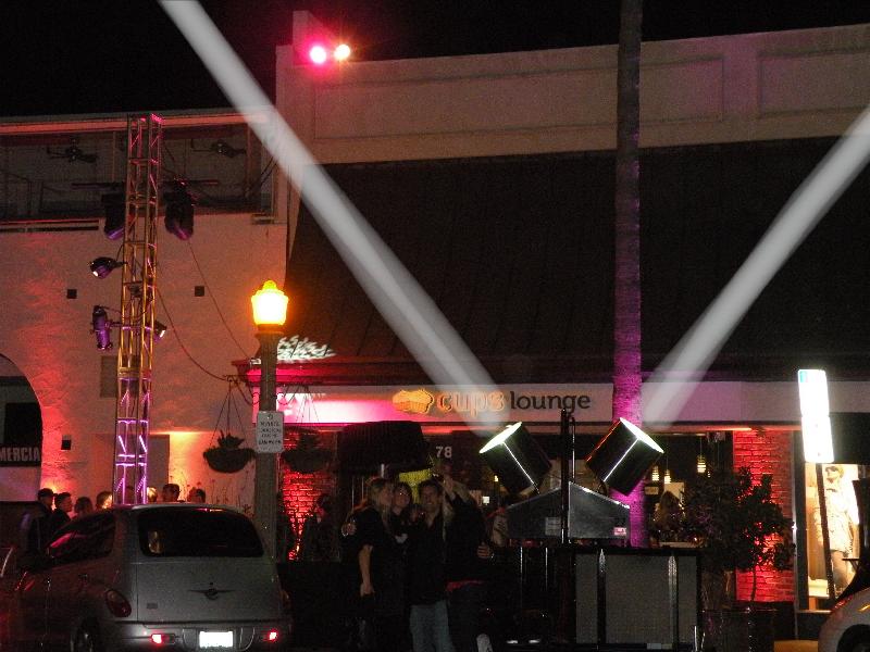 If you wish to add a touch of red carpet / Hollywood style to your crowded location, such as a downtown nightclub where sidewalk area is limited, our Sky Cannon Trailers are specially designed for this purpose. We can alter the direction of the beams to draw traffic from specific directions while also avoiding sturctures such as highrise buildings. We find that these consistently draw foot traffic for at least 6-8 blocks, and vehicular traffic can see the lights for around a mile (from the freeways when the lights are in the Gaslamp Quarter). These self-contained units use a quiet Honda gasoline generator to provide the necessary power, so your customers can be directly next to the unit without concern.